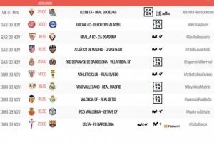 体育资讯10月7日讯 官方公布了西甲第12轮赛程,11月9日晚上23:15巴列卡诺vs皇马,11月10日凌晨4:00塞尔塔vs巴萨。